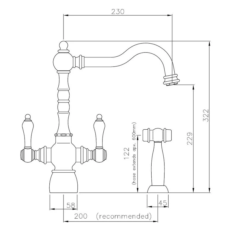 Abode Bayenne Monobloc Kitchen Sink Mixer Tap with Handspray