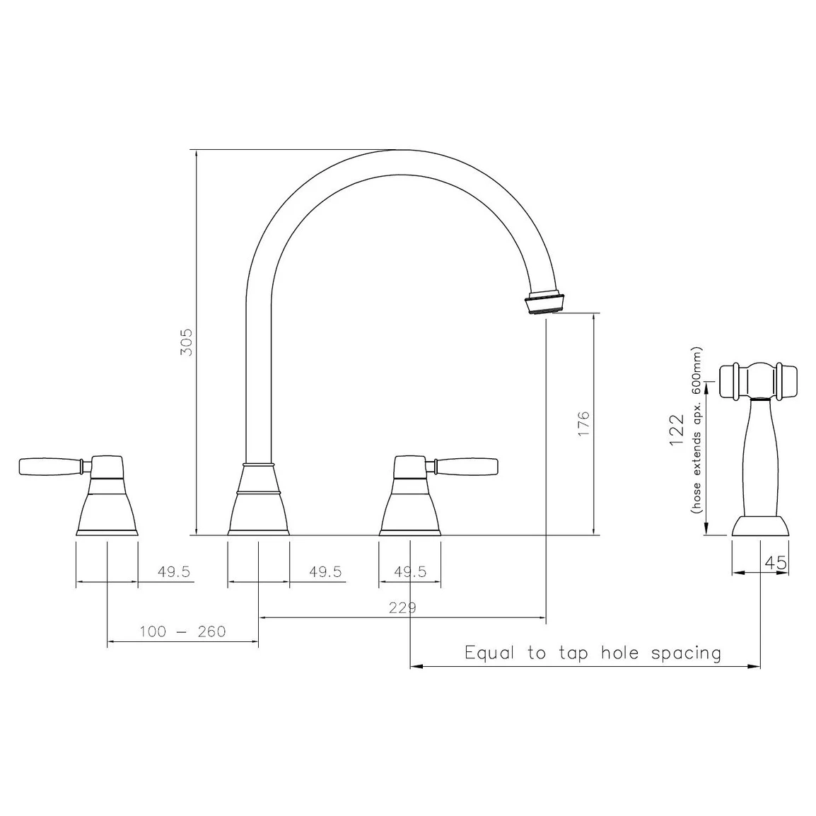 Abode Brompton 3 Part Mixer Tap with Handspray