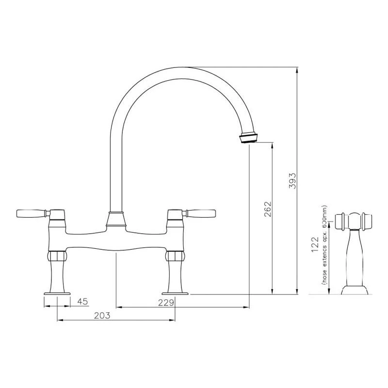 Brompton Dual Lever Bridge mixer with independent Handspray, Pewter