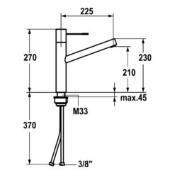 This tap requires a minimum water pressure of 0.5 bar to operate properly
