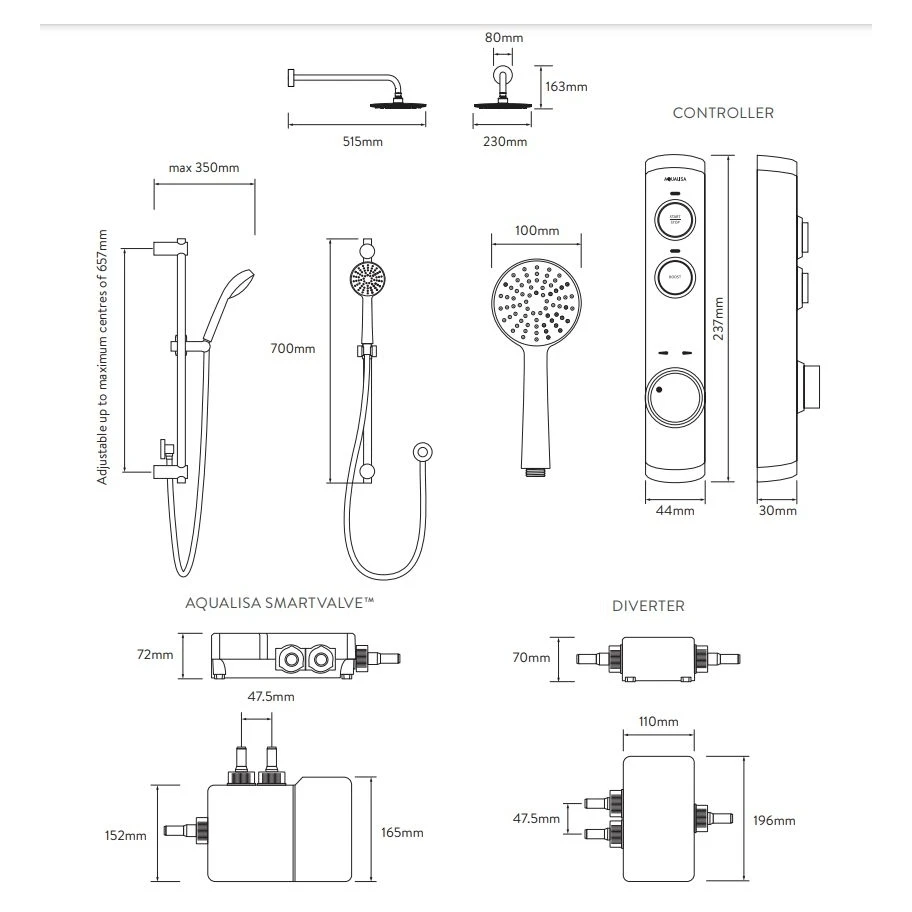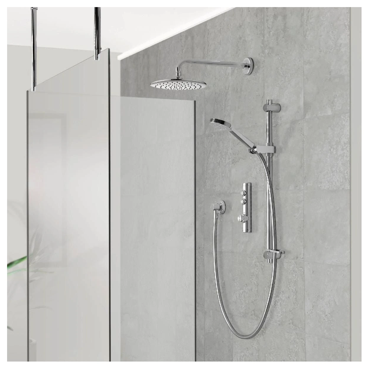 Divert effortlessly between the adjustable height shower head and extra wide wall fixed drencher head