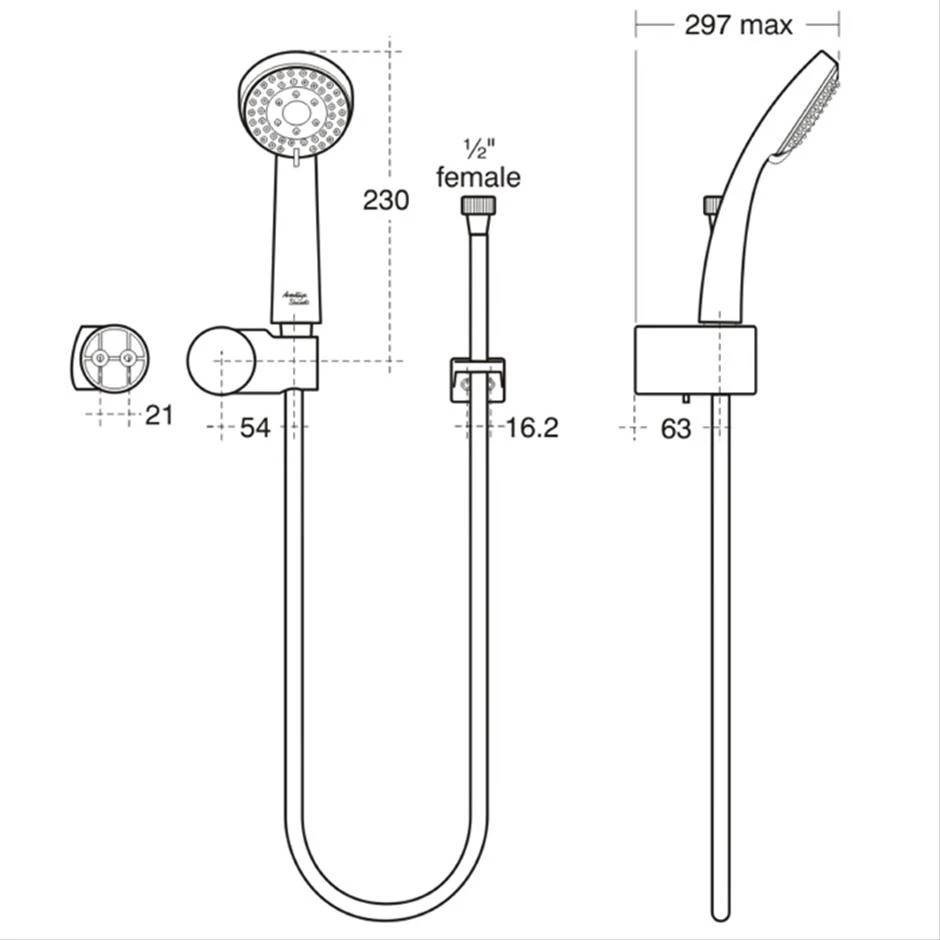 Armaglide 2 shower set with 3 function handspray, 1750mm Idealflex smooth hose, wall mounted holder and category 5 hose retainer