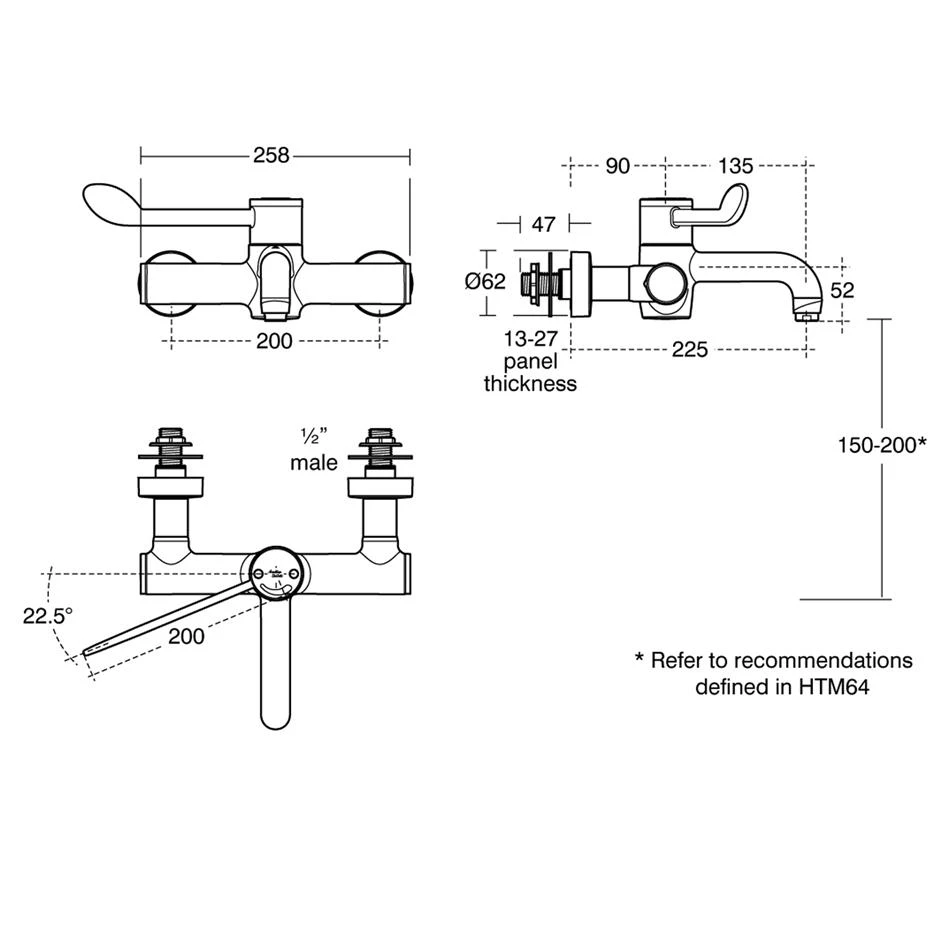 Especially suited to medium and large hospital pattern integral back outlet basins and washing associated with clinical or nursing procedures