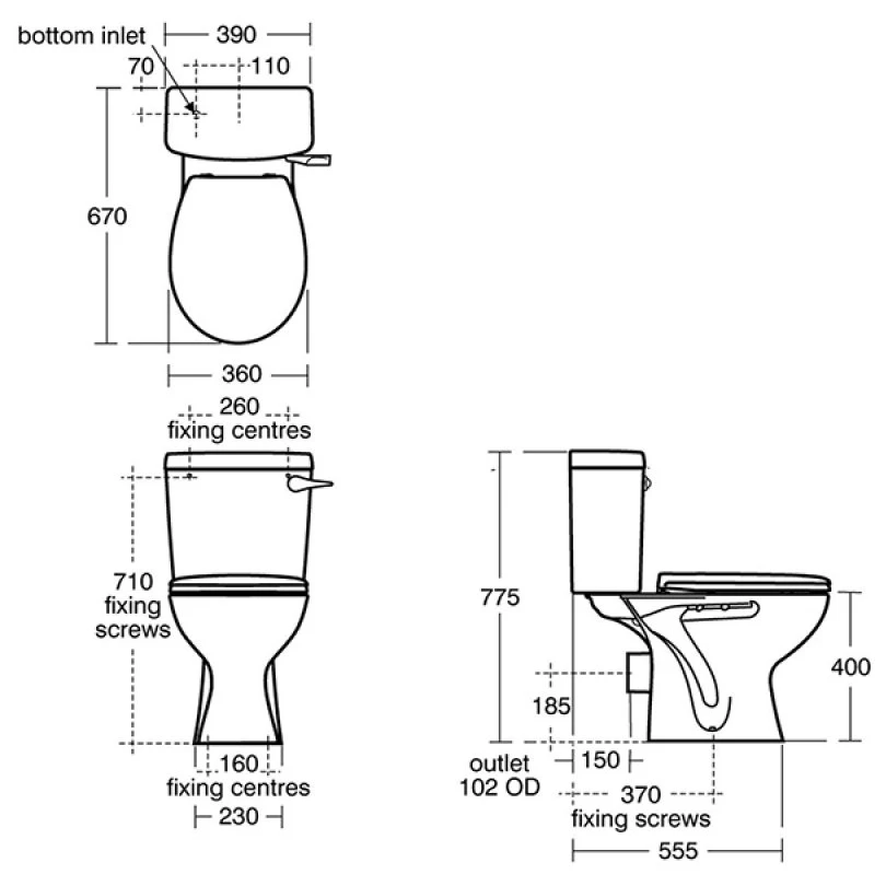 * E8968 Sandringham 21 close coupled 6 or 4 litre cistern, single flush syphon, bottom supply and internal overflow