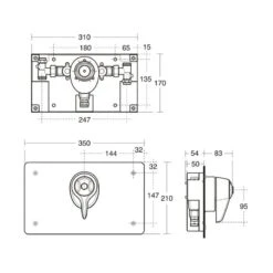 Sensorflow 21 tubular panel mounted 150mm projection spout, remote panel sensor, copper tube inlets, mains operated