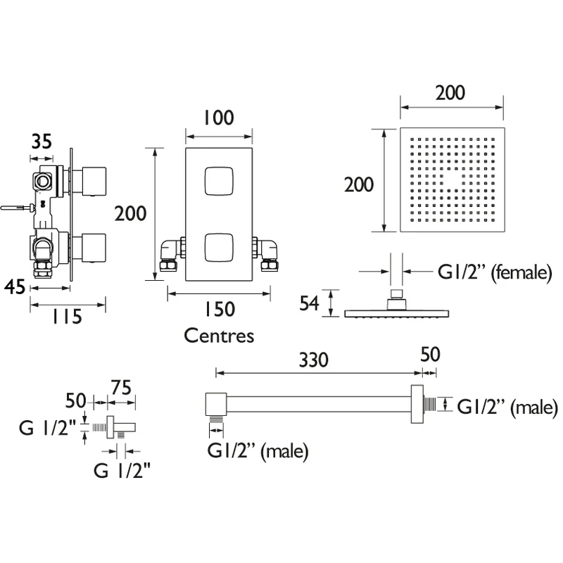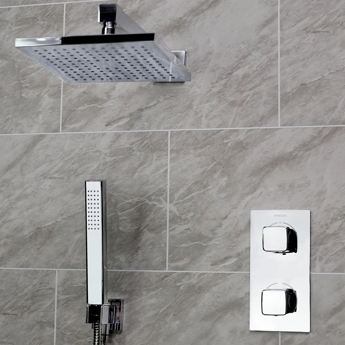 200mm square fixed head with shower arm