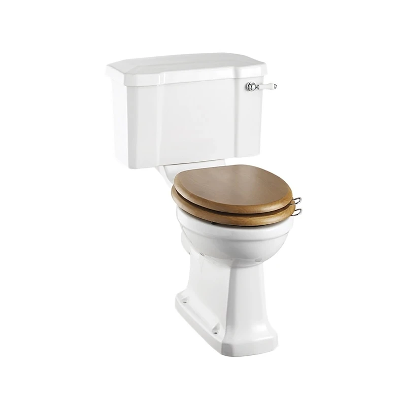 Consists of 1 x Burlington Rimless Close Coupled Pan (P20) and 1 x Close Coupled / Low level cistern 51cm Ceramic Lever (including bottom entry cistern fittings) (C1)
