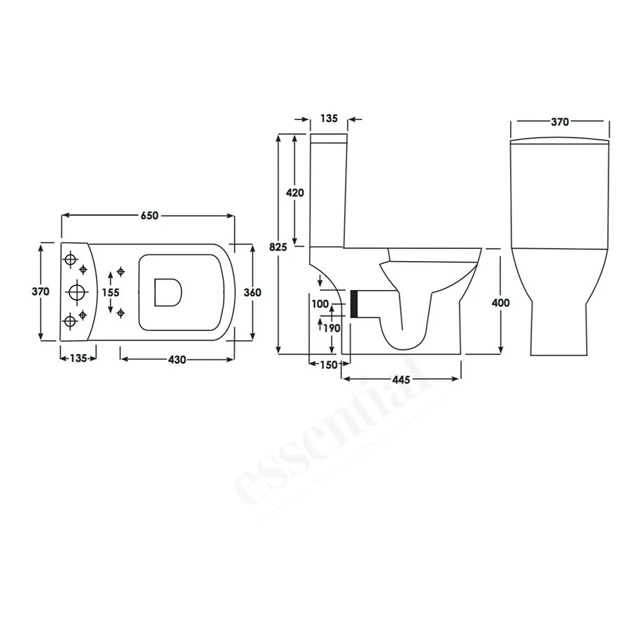 Pan Projection: 650mm, Height: 400mm, Pan Height from Floor: 400mm, Pan Width: 370mm