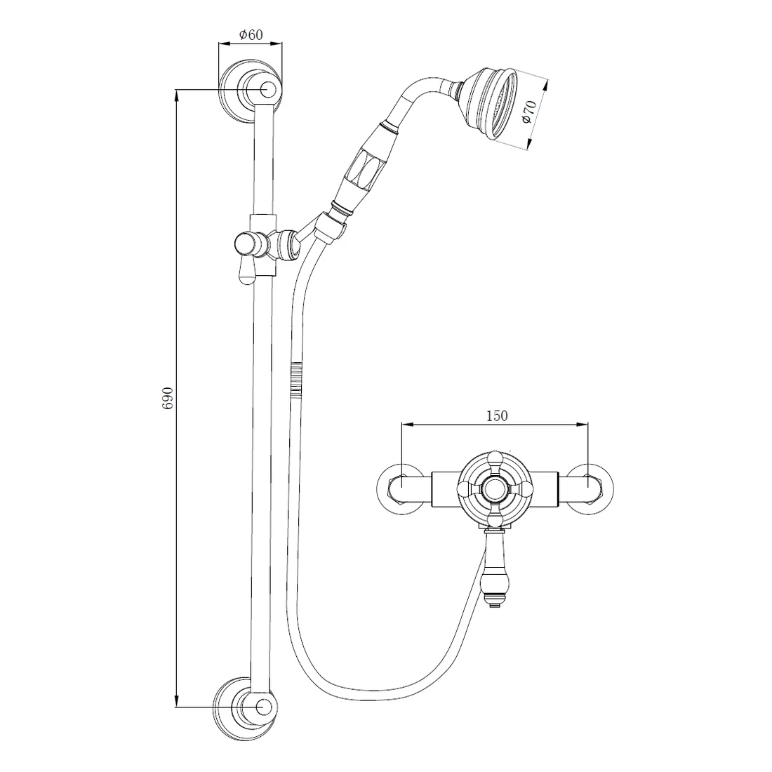 Holborn exposed shower pack including exposed thermostatic shower valve with traditional slide rail kit