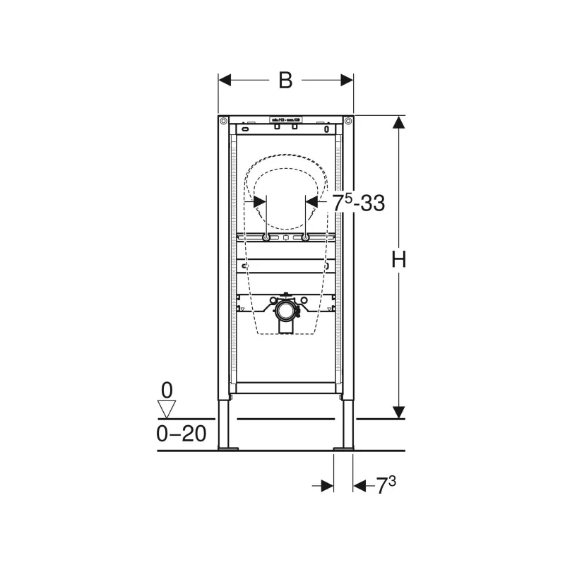 Foot plate depth suitable for installation in U-profiles UW 50 and UW75 and Geberit Duofix system rails