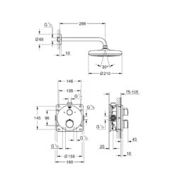 Euphoria System 180 Shower system with thermostat for wall mounting