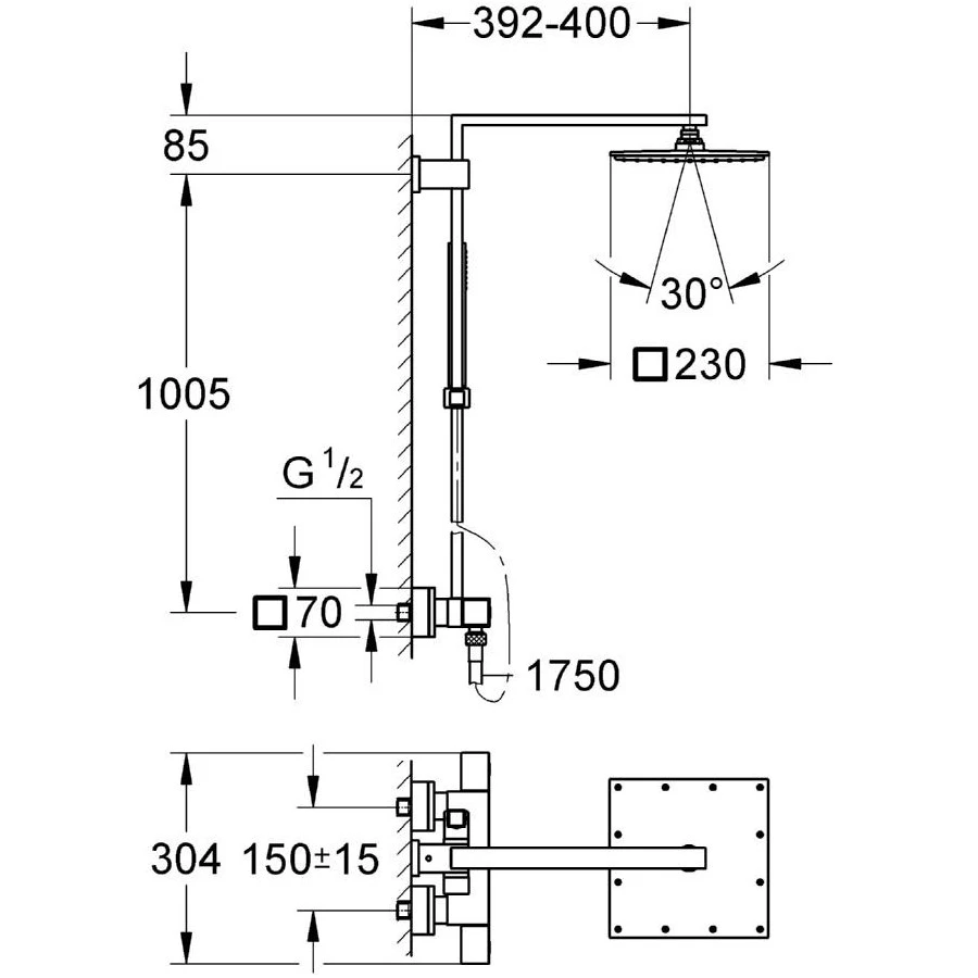 Euphoria Cube XXL System 230 Shower system with thermostatic mixer for wall mounting