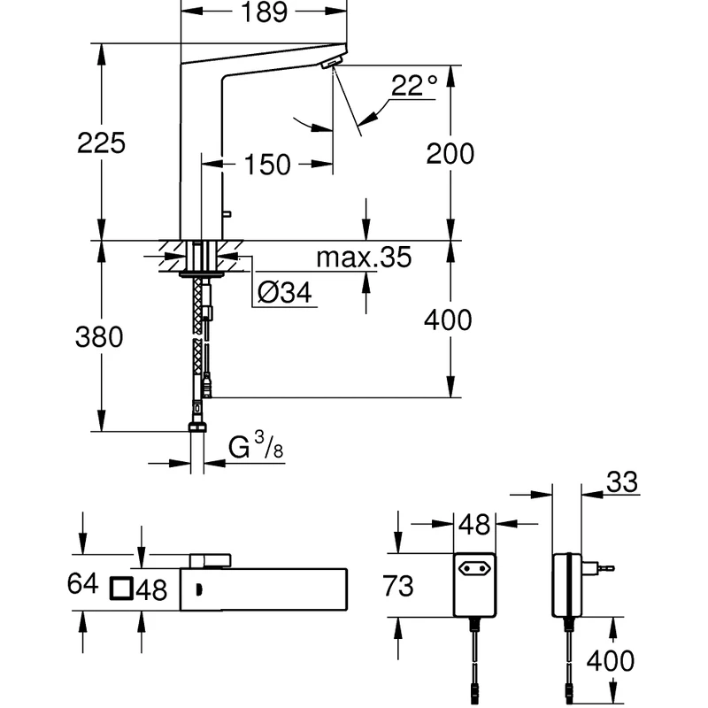 Eurocube E Infra-red electronic basin mixer 1/2″ with mixing device and adjustable temperature limiter 36440 Chrome