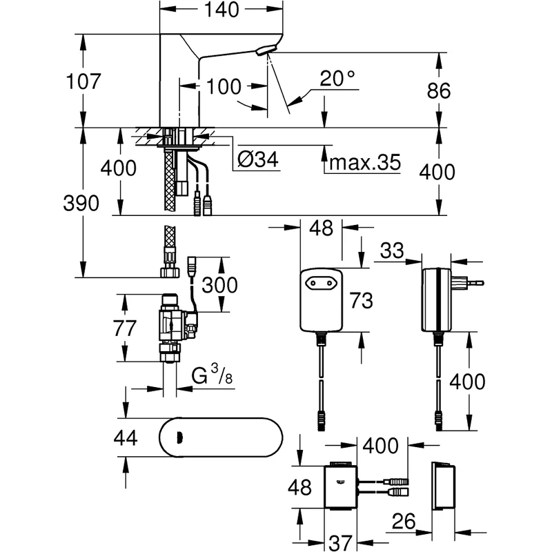 Grohe Euroeco Cosmopolitan E Bluetooth Infra-Red Electronic Basin Tap