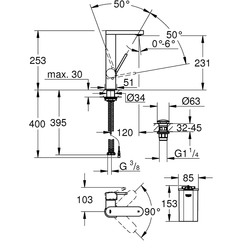 – Grohe AquaGuide adjustable mousseur