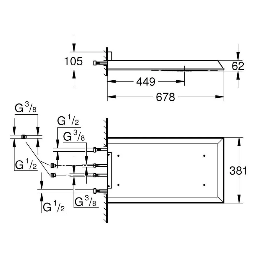 381 mm (width) x 60 mm (height) x 677 mm (depth)