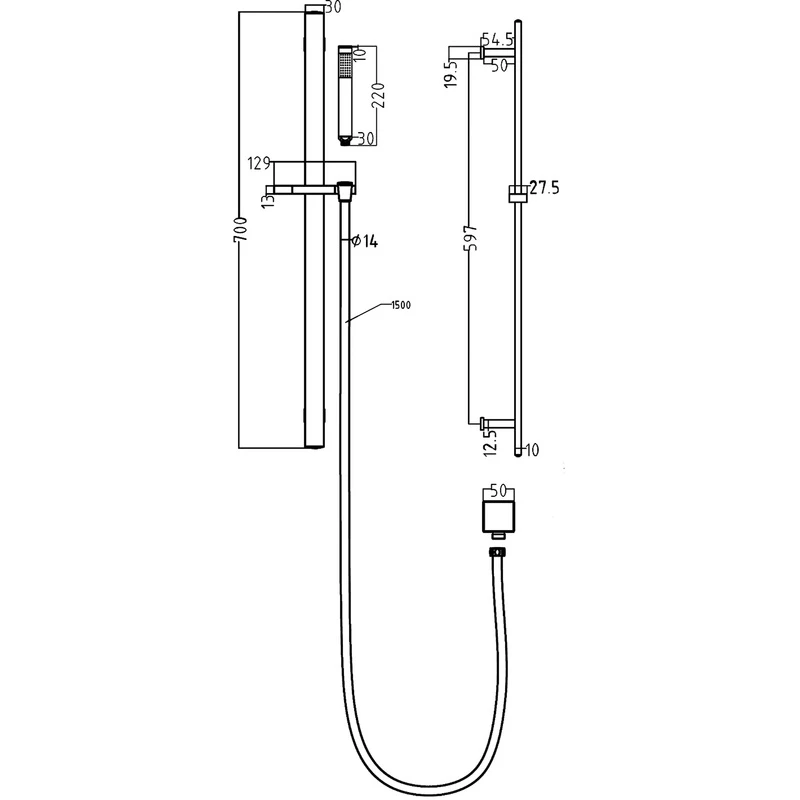 Height 700mm, Width 129mm, Depth 55mm