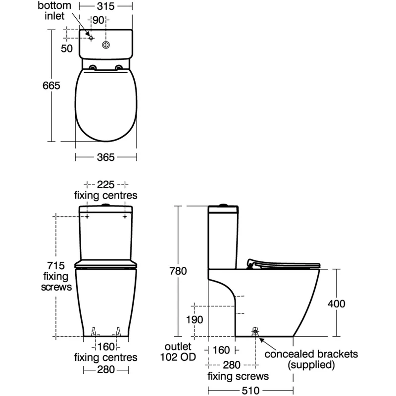 Concept close coupled WC pan with horizontal outlet and Aquablade technology