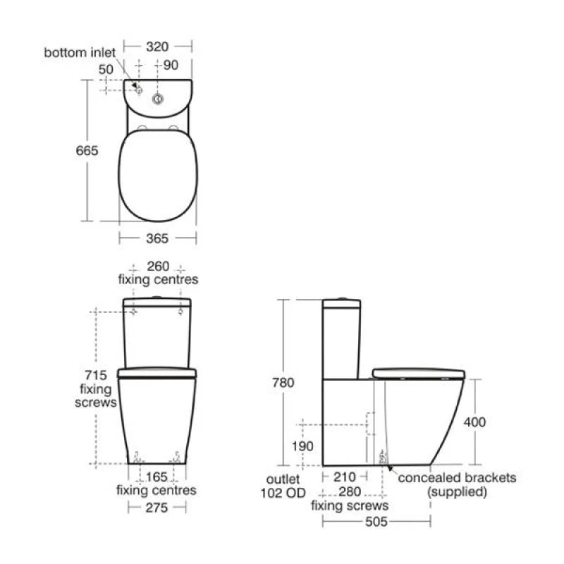 Concept Arc Close Coupled Fully Back To Wall Toilet with Normal Close Toilet Seat