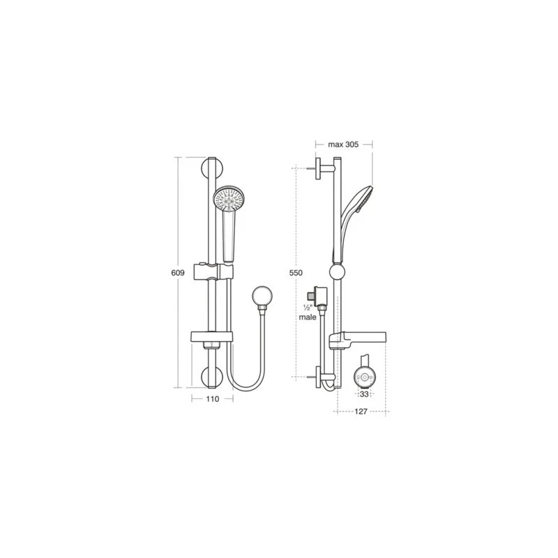 Idealrain S3 shower kit with 3 function 80mm handspray, 600mm metal slide rail, 1.35m hose & integrated soap dish