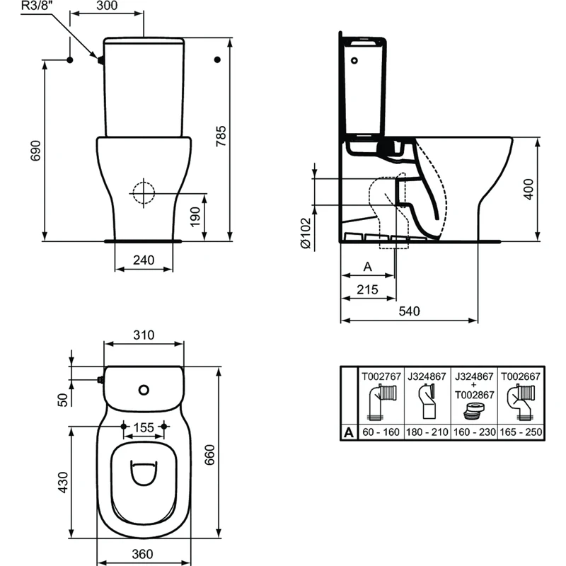 Tesi Close Coupled Back-to-Wall Toilet with Normal Close Seat