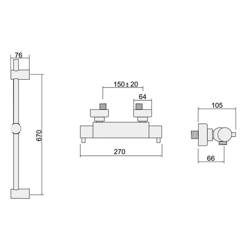Inta Kiko Thermostatic Bar Shower with Flexible Slide Rail Kit and 5 Function Handset