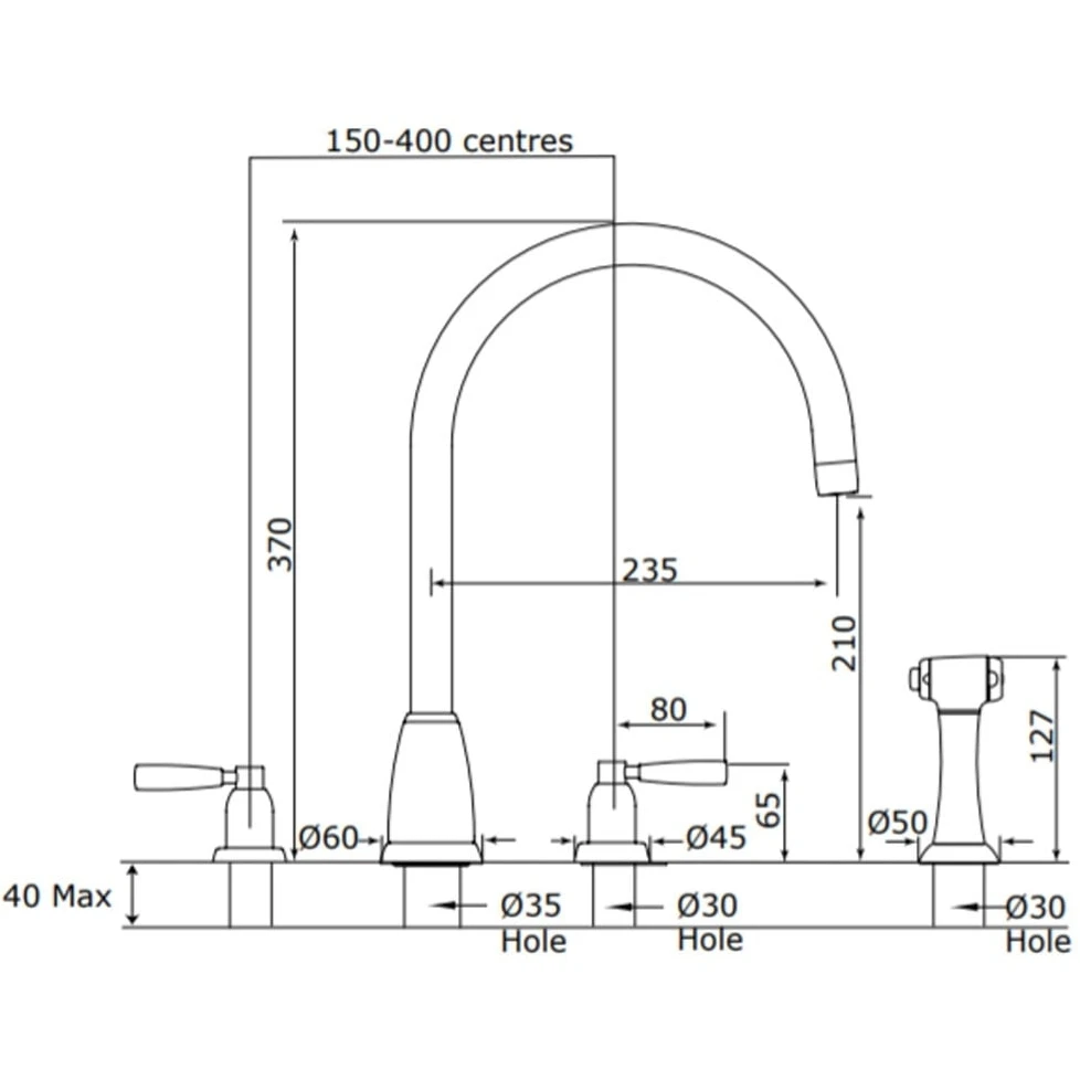 Callisto C Spout Kitchen 3 Hole Sink Mixer Tap and Spray