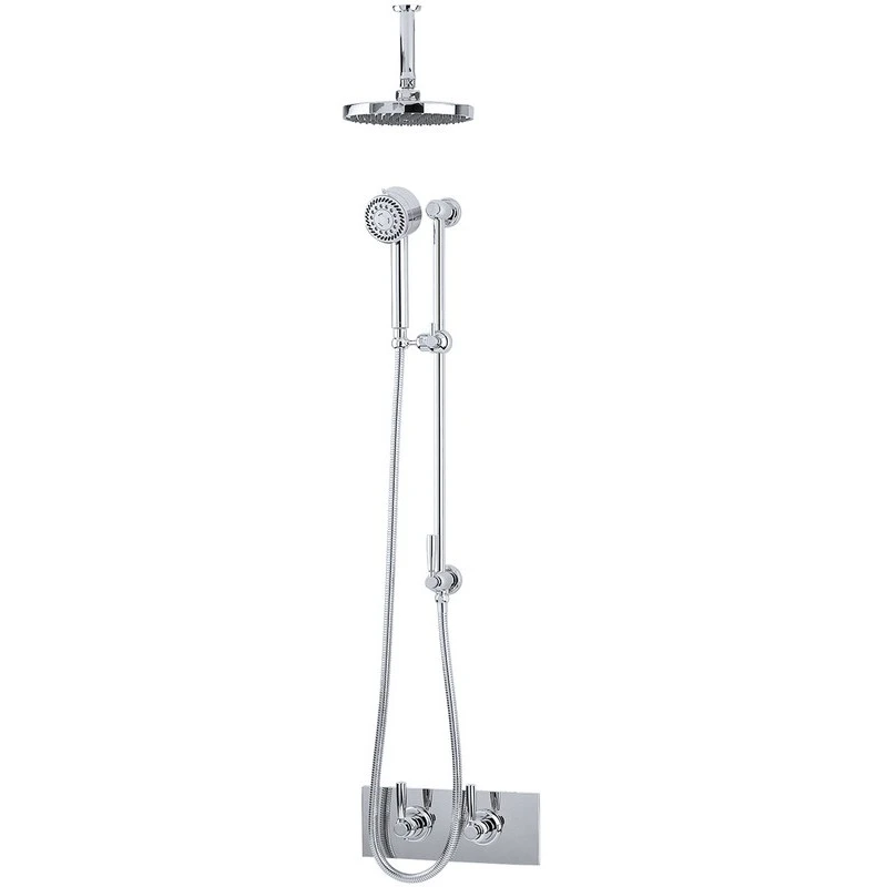 Thermo Shower Mixer & Shut Off with Lever Handles, Sliding Rail with Shut Off, Handshower Hose, Multi-function Handshower, Ceiling Outlet & 8″ Easy Clean Discus Shower Rose