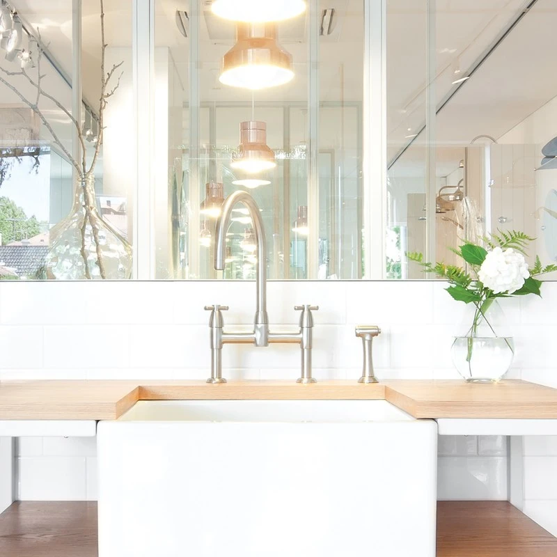 Io two hole sink mixer with crosshead handles and rinse