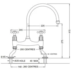Perrin & Rowe Oberon C Spout Kitchen Sink Mixer With Rinse Pewter