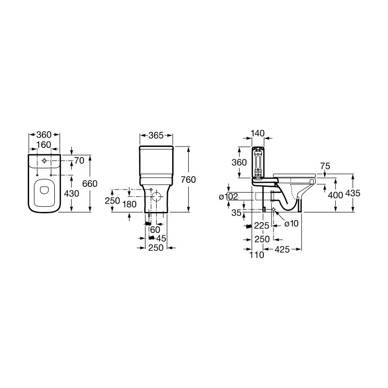 * 34178C000 Dama-N Dual flush 4.5/3L WC cistern without lid (one piece shell)
