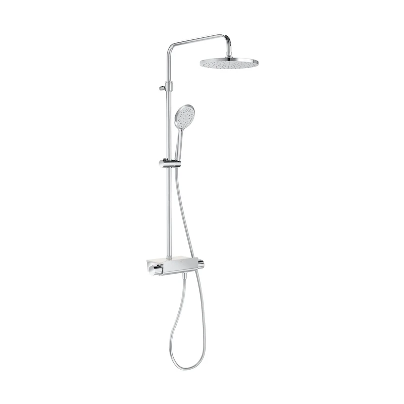 Deck Round Thermostatic shower column with shelf