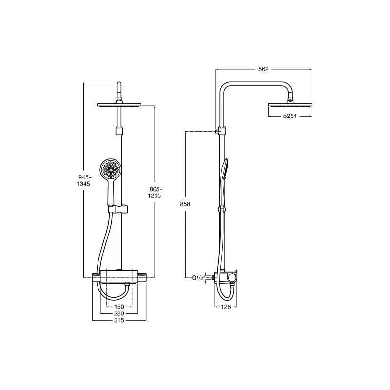 Width 562mm, Height 1345mm