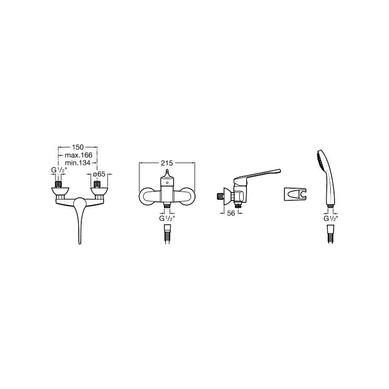 Victoria Pro wall-mounted shower mixer, 1.7m flexible shower hose and swivel wall bracket