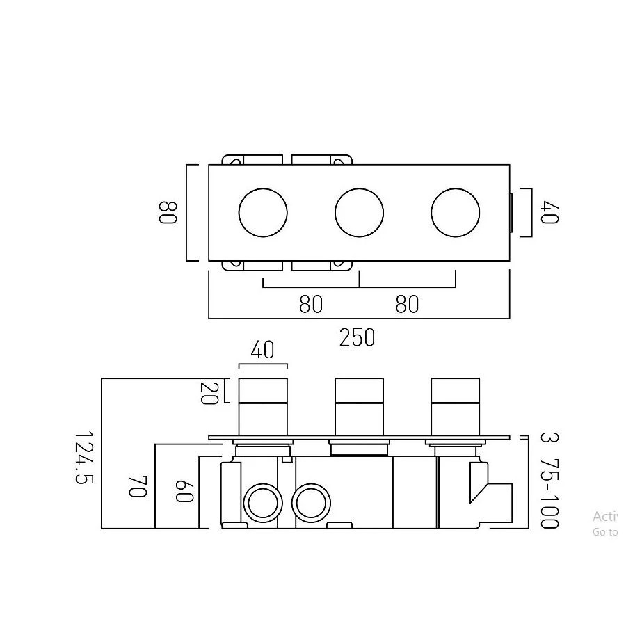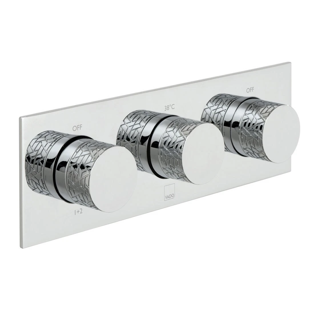 Omika Tablet 3 Outlet, 3 Handle Horizontal Thermostatic Valve with All-Flow Function