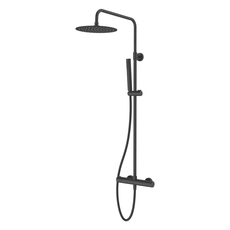Vema Thermostatic Shower Column with Fixed Head and Riser, Matt Black